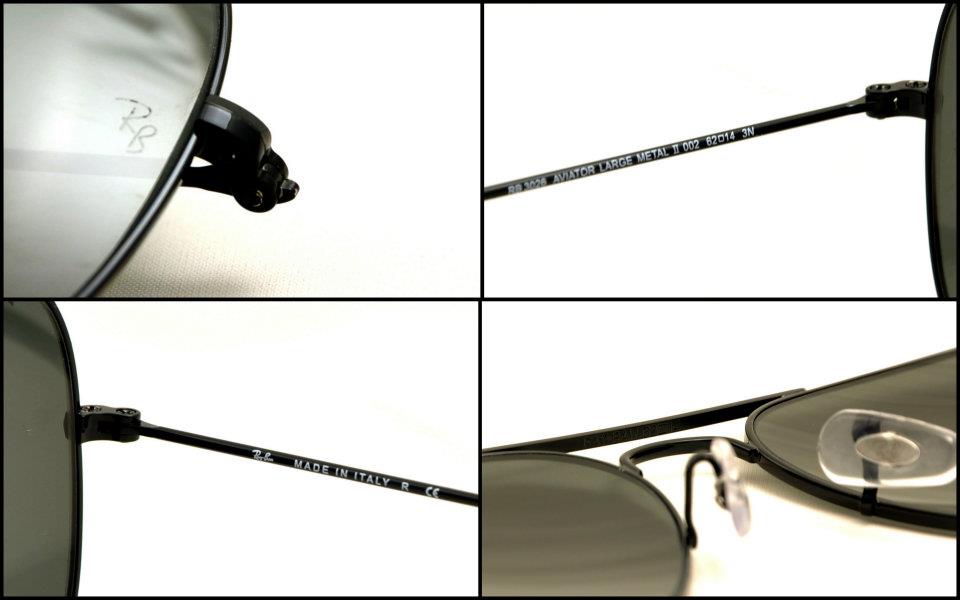 Frame colour: Black Lens: Glass with UV400 protection Lens colour: Black The Rb Engrave in the left lens Word 'rayban made in Italy' print on right leg On the left leg have printed the model and size. RB interlocking at Nose Pad size mark on the bridge between lens