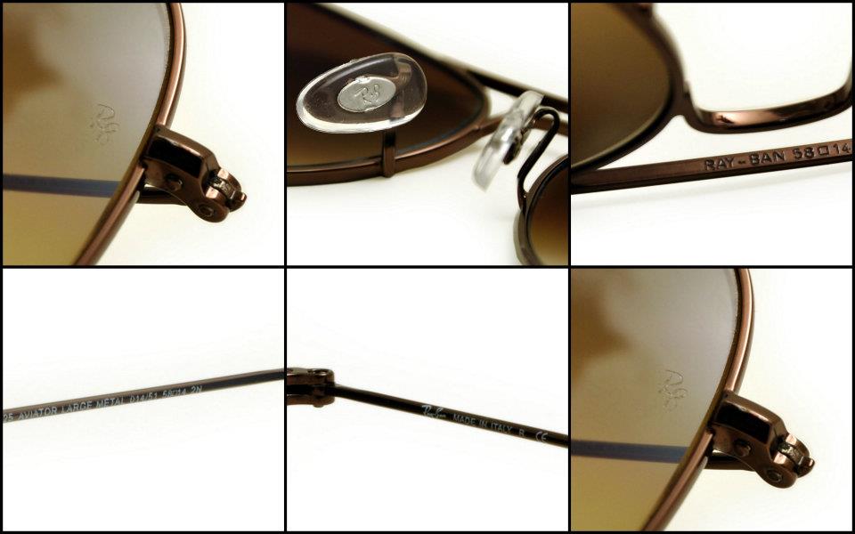 Frame colour: Coffee Lens: Glass with UV400 protection Lens colour: Brown Gradient The Rb Engrave in the left lens Word 'rayban made in Italy' print on right leg On the left leg have printed the model and size. RB interlocking at Nose Pad size mark on the bridge between lens